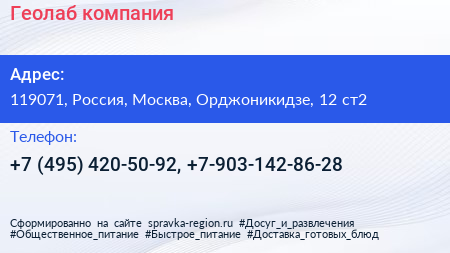Геолаб, компания по адресу 119071, Россия, Москва, Орджоникидзе, 12 ст2 в дальнейшем Организация, размещена в следующих категориях: