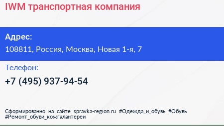 IWM, транспортная компания по адресу 108811, Россия, Москва, Новая 1-я, 7 в дальнейшем Организация, размещена в следующих категориях: