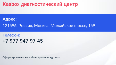 Kasbox, диагностический центр по адресу 121596, Россия, Москва, Можайское шоссе, 159 в дальнейшем Организация, размещена в следующих категориях: