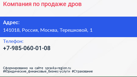Компания по продаже дров по адресу 141018, Россия, Москва, Терешковой, 1 в дальнейшем Организация, размещена в следующих категориях: