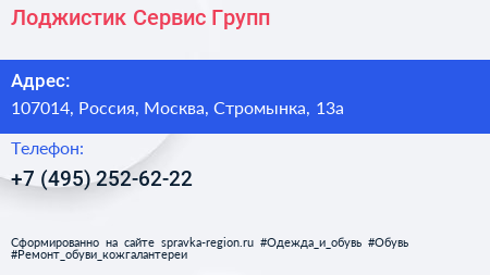 Лоджистик Сервис Групп по адресу 107014, Россия, Москва, Стромынка, 13а в дальнейшем Организация, размещена в следующих категориях: