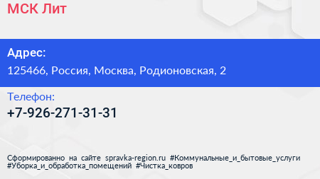 МСК-Лит по адресу 125466, Россия, Москва, Родионовская, 2 в дальнейшем Организация, размещена в следующих категориях: