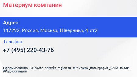 Материум, компания по адресу 117292, Россия, Москва, Шверника, 4 ст2 в дальнейшем Организация, размещена в следующих категориях: