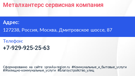 Металхантерс, сервисная компания по адресу 127238, Россия, Москва, Дмитровское шоссе, 87 в дальнейшем Организация, размещена в следующих категориях: