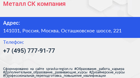 Металл СК, компания по адресу 141031, Россия, Москва, Осташковское шоссе, 221 в дальнейшем Организация, размещена в следующих категориях: