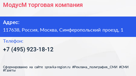 МодусМ, торговая компания по адресу 117638, Россия, Москва, Симферопольский проезд, 1 в дальнейшем Организация, размещена в следующих категориях: