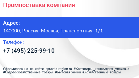 Промпоставка, компания по адресу 140000, Россия, Москва, Транспортная, 1/1 в дальнейшем Организация, размещена в следующих категориях: