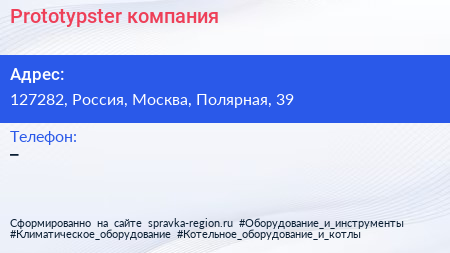 Prototypster, компания по адресу 127282, Россия, Москва, Полярная, 39 в дальнейшем Организация, размещена в следующих категориях: