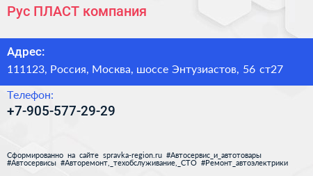 Рус ПЛАСТ, компания по адресу 111123, Россия, Москва, шоссе Энтузиастов, 56 ст27 в дальнейшем Организация, размещена в следующих категориях:
