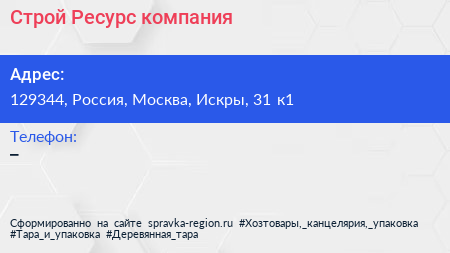 Строй Ресурс, компания по адресу 129344, Россия, Москва, Искры, 31 к1 в дальнейшем Организация, размещена в следующих категориях: