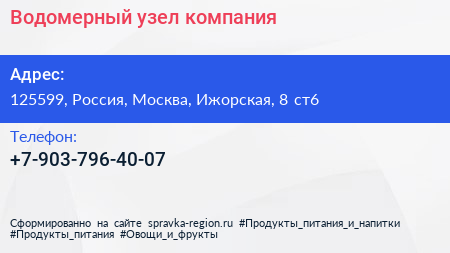 Водомерный узел, компания по адресу 125599, Россия, Москва, Ижорская, 8 ст6 в дальнейшем Организация, размещена в следующих категориях:
