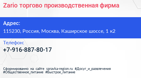 Zario, торгово-производственная фирма по адресу 115230, Россия, Москва, Каширское шоссе, 1 к2 в дальнейшем Организация, размещена в следующих категориях: