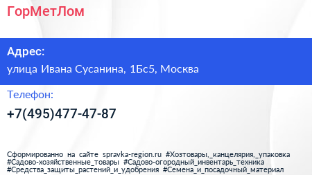 ГорМетЛом по адресу улица Ивана Сусанина, 1Бс5, Москва в дальнейшем Организация, размещена в следующих категориях:
