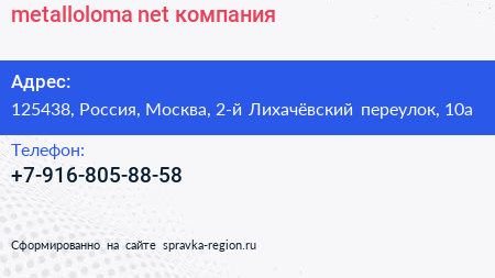 metalloloma-net, компания по адресу 125438, Россия, Москва, 2-й Лихачёвский переулок, 10а в дальнейшем Организация, размещена в следующих категориях: