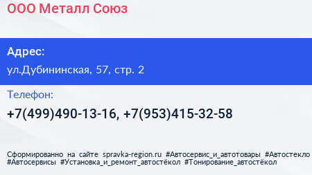 ООО «Металл-Союз» по адресу ул.Дубининская, 57, стр. 2 в дальнейшем Организация, размещена в следующих категориях: