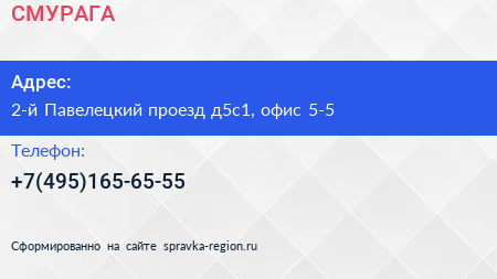 СМУРАГА по адресу 2-й Павелецкий проезд д5с1, офис 5-5 в дальнейшем Организация, размещена в следующих категориях:
