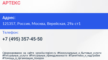 АРТЕКС по адресу 121357, Россия, Москва, Верейская, 29а ст1 в дальнейшем Организация, размещена в следующих категориях:
