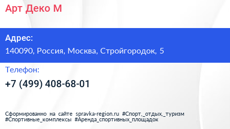 Арт-Деко М по адресу 140090, Россия, Москва, Стройгородок, 5 в дальнейшем Организация, размещена в следующих категориях: