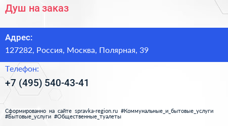 Душ на заказ по адресу 127282, Россия, Москва, Полярная, 39 в дальнейшем Организация, размещена в следующих категориях: