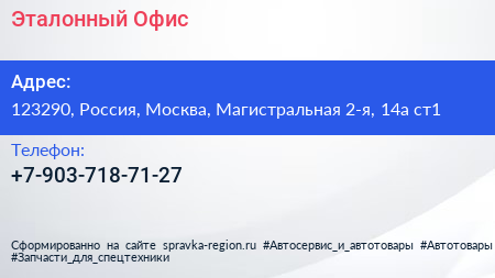 Эталонный Офис по адресу 123290, Россия, Москва, Магистральная 2-я, 14а ст1 в дальнейшем Организация, размещена в следующих категориях: