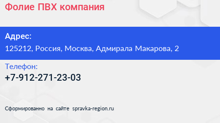 Фолие ПВХ, компания по адресу 125212, Россия, Москва, Адмирала Макарова, 2 в дальнейшем Организация, размещена в следующих категориях: