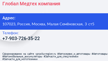 Глобал-Медтех, компания по адресу 107023, Россия, Москва, Малая Семёновская, 3 ст5 в дальнейшем Организация, размещена в следующих категориях: