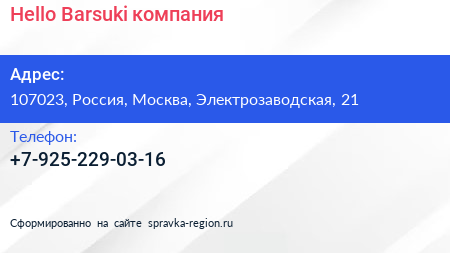Hello, Barsuki, компания по адресу 107023, Россия, Москва, Электрозаводская, 21 в дальнейшем Организация, размещена в следующих категориях: