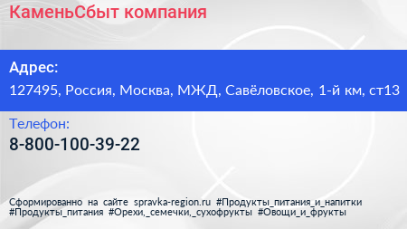КаменьСбыт, компания по адресу 127495, Россия, Москва, МЖД, Савёловское, 1-й км, ст13 в дальнейшем Организация, размещена в следующих категориях: