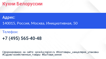 Кухни Белоруссии по адресу 140015, Россия, Москва, Инициативная, 50 в дальнейшем Организация, размещена в следующих категориях:
