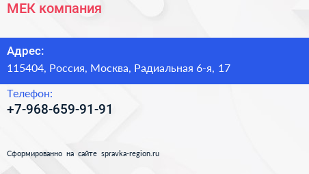 МЕК, компания по адресу 115404, Россия, Москва, Радиальная 6-я, 17 в дальнейшем Организация, размещена в следующих категориях: