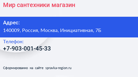 Мир сантехники, магазин по адресу 140009, Россия, Москва, Инициативная, 7Б в дальнейшем Организация, размещена в следующих категориях: