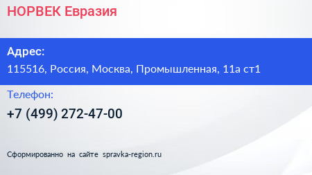 НОРВЕК Евразия по адресу 115516, Россия, Москва, Промышленная, 11а ст1 в дальнейшем Организация, размещена в следующих категориях: