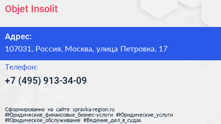 Objet Insolit по адресу 107031, Россия, Москва, улица Петровка, 17 в дальнейшем Организация, размещена в следующих категориях:
