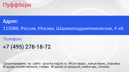 Пуффбери по адресу 115088, Россия, Москва, Шарикоподшипниковская, 4 к8 в дальнейшем Организация, размещена в следующих категориях: