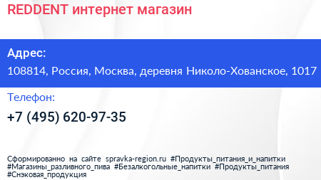 REDDENT, интернет-магазин по адресу 108814, Россия, Москва, деревня Николо-Хованское, 1017 в дальнейшем Организация, размещена в следующих категориях: