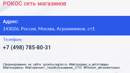 РОКОС, сеть магазинов по адресу 143026, Россия, Москва, Агрохимиков, ст1 в дальнейшем Организация, размещена в следующих категориях: