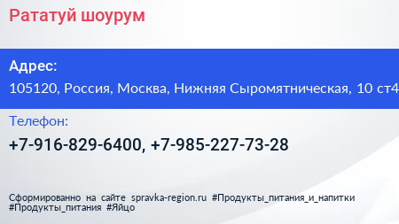 Рататуй, шоурум по адресу 105120, Россия, Москва, Нижняя Сыромятническая, 10 ст4 в дальнейшем Организация, размещена в следующих категориях: