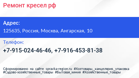 Ремонт-кресел.рф по адресу 125635, Россия, Москва, Ангарская, 10 в дальнейшем Организация, размещена в следующих категориях:
