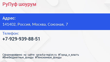 РуПуф, шоурум по адресу 141402, Россия, Москва, Союзная, 7 в дальнейшем Организация, размещена в следующих категориях: