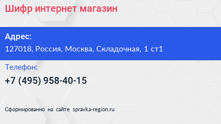 Шифр, интернет-магазин по адресу 127018, Россия, Москва, Складочная, 1 ст1 в дальнейшем Организация, размещена в следующих категориях: