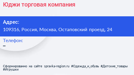 Юджи, торговая компания по адресу 109316, Россия, Москва, Остаповский проезд, 24 в дальнейшем Организация, размещена в следующих категориях: