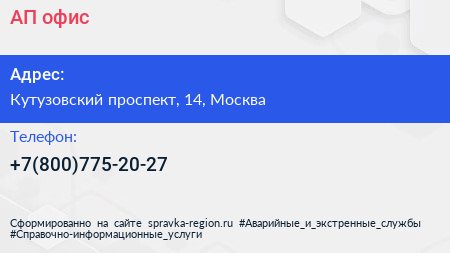 АП офис по адресу Кутузовский проспект, 14, Москва в дальнейшем Организация, размещена в следующих категориях: