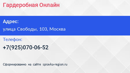 Гардеробная Онлайн по адресу улица Свободы, 103, Москва в дальнейшем Организация, размещена в следующих категориях: