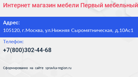 Интернет-магазин мебели «Первый мебельный» по адресу 105120, г.Москва, ул.Нижняя Сыромятническая, д.10Ас1 в дальнейшем Организация, размещена в следующих категориях: