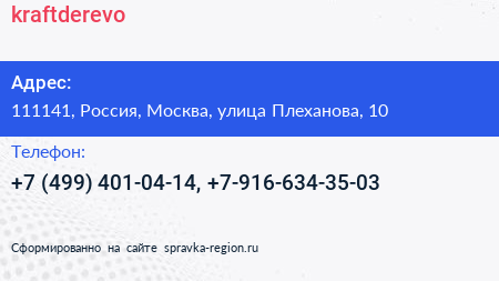 kraftderevo по адресу 111141, Россия, Москва, улица Плеханова, 10 в дальнейшем Организация, размещена в следующих категориях: