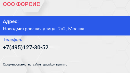 ООО «ФОРСИС» по адресу Новодмитровская улица, 2к2, Москва в дальнейшем Организация, размещена в следующих категориях: