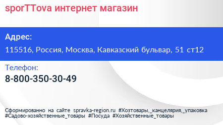 sporTTova, интернет-магазин по адресу 115516, Россия, Москва, Кавказский бульвар, 51 ст12 в дальнейшем Организация, размещена в следующих категориях: