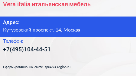 Vera-italia итальянская мебель по адресу Кутузовский проспект, 14, Москва в дальнейшем Организация, размещена в следующих категориях: