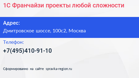 1С Франчайзи: проекты любой сложности по адресу Дмитровское шоссе, 100с2, Москва в дальнейшем Организация, размещена в следующих категориях: