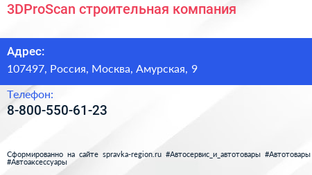 3DProScan, строительная компания по адресу 107497, Россия, Москва, Амурская, 9 в дальнейшем Организация, размещена в следующих категориях: